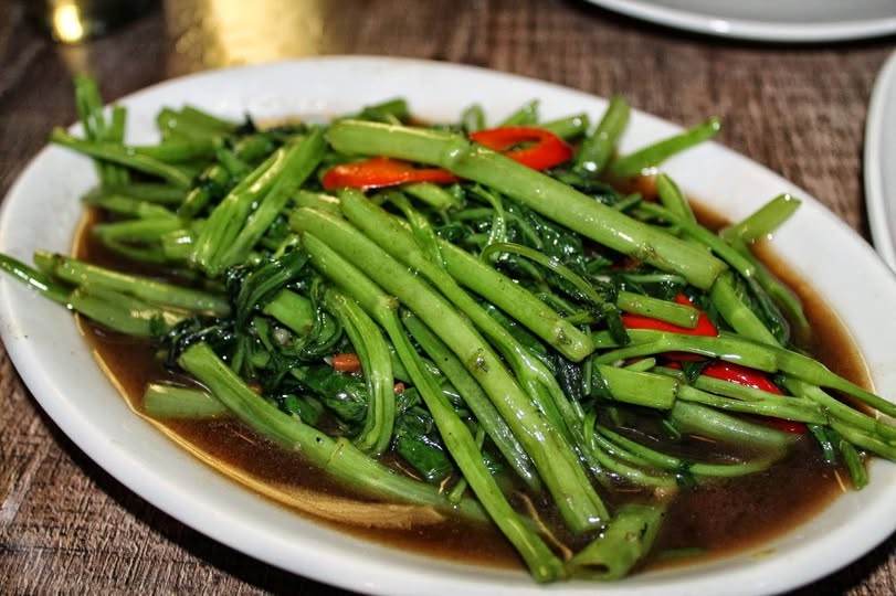 Restovaný vodní špenát – Stir Fried Morning Glory